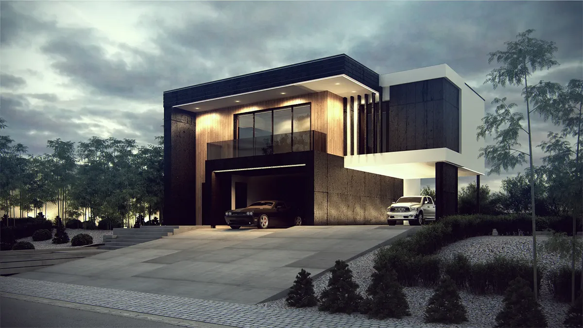 Dwie pełne kondygnacje bez skosów dają większą swobodę w aranżacji pomieszczeń. To opcja dla osób, które potrzebują więcej miejsca przy ograniczonej powierzchni działki.